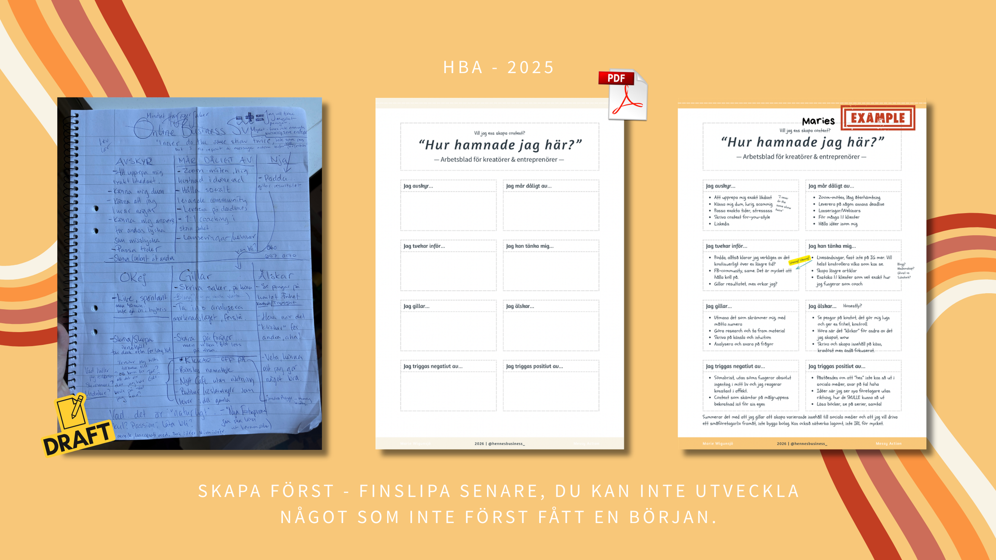 Ladda ned PDF:en och svara dig själv, du får mina personliga svar som ett exempel på hur du kan klottra ned dina egna tankar.
